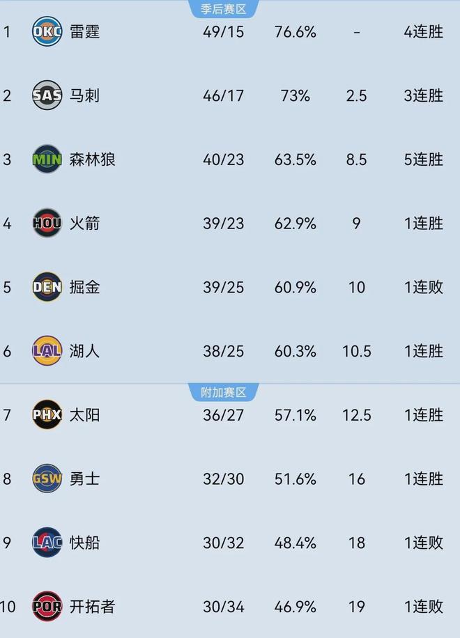 努努力,西部前三甲大有希望;掉队的话,残酷的附加赛大门正在招手。